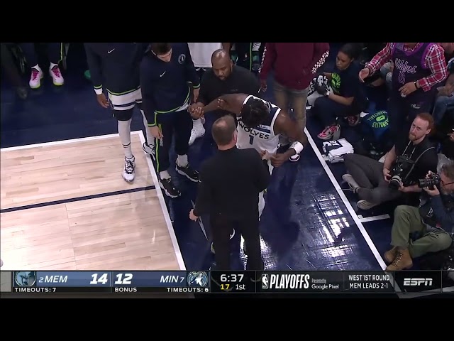 Anthony Edwards helped off floor after apparent knee inju...