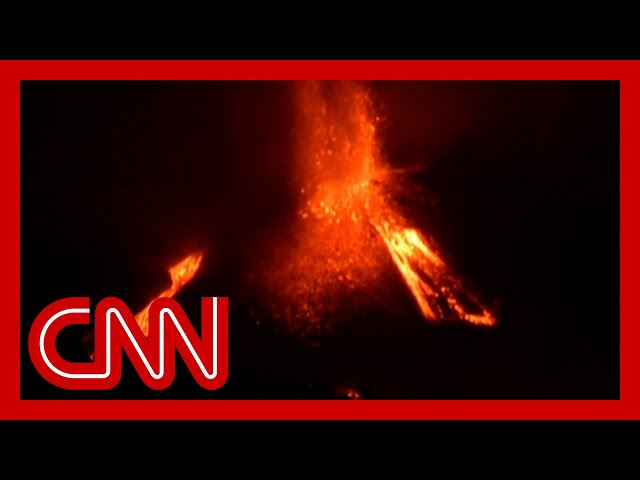 Blocks of lava as large as buildings roll from volcano