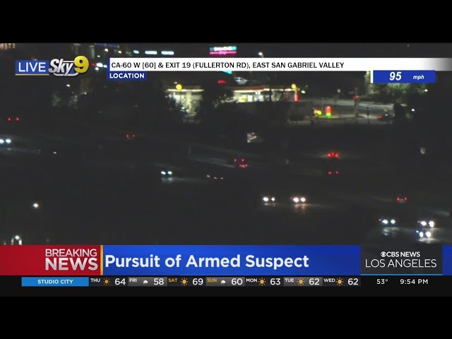 Title: CHP in pursuit of possibly armed suspect driving more than 140 mph through San Gabriel Valley
