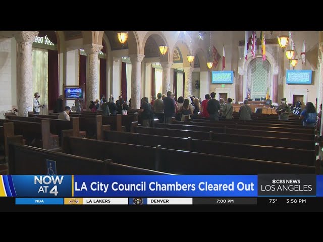 Title: City Hall chambers cleared as protestors disrupt meeting; Councilmembers vote to censure Cedillo, de