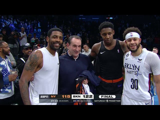 Coach K greeted by former Duke stars Kyrie irving, Seth Curry & RJ Barrett | NBA on ESPN