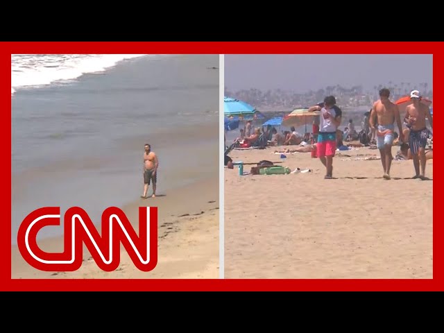 Contrasting images as some California beaches reopen