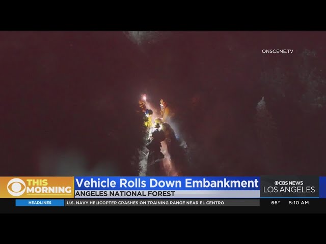 Title: Crews rescue passengers from vehicle that rolled 300 feet down embankment in Angeles National Forest