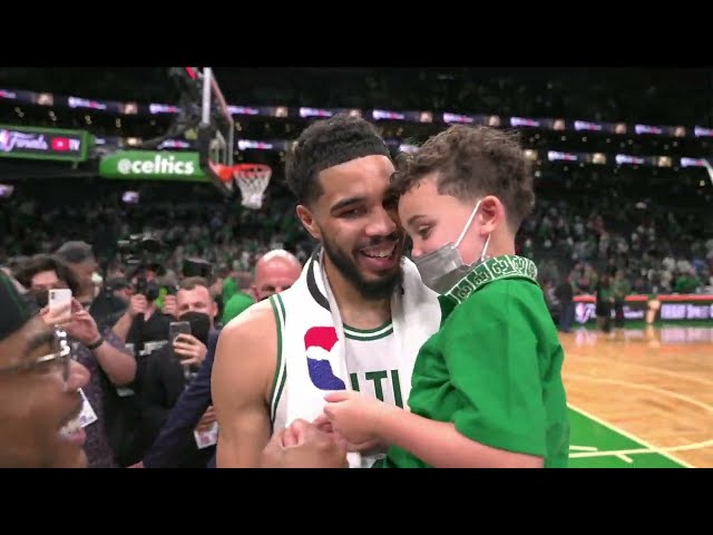 Deuce and Jayson Tatum celebrate the Celtics W