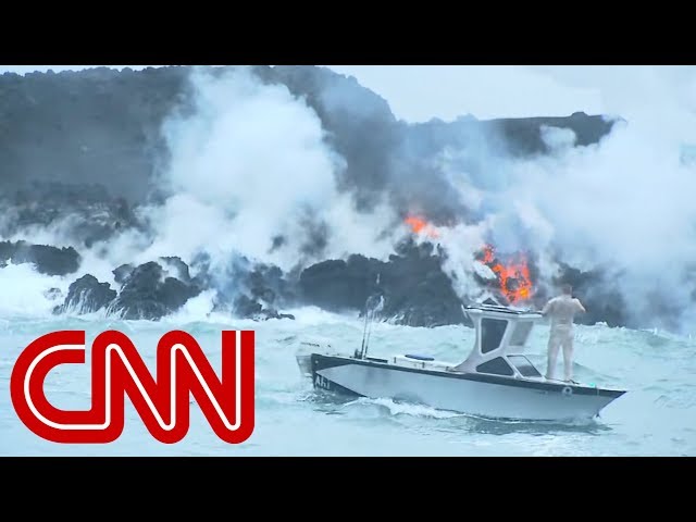 Fast-moving lava from volcano flows into Pacific Ocean