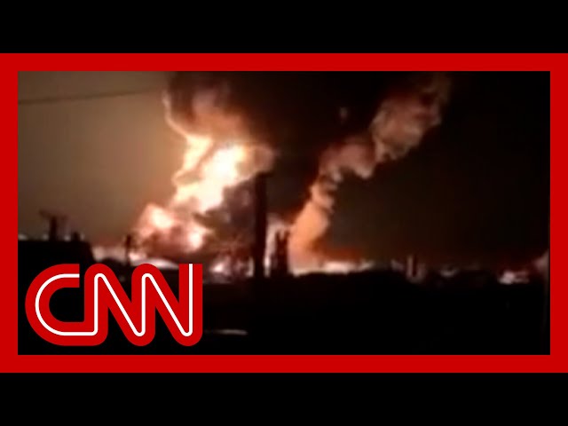 Fuel tanks burn after explosions near Vasylkiv, Ukraine