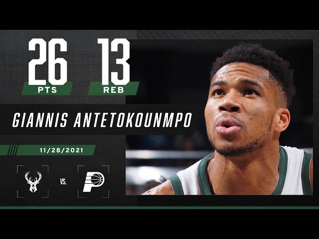 Giannis Antetokounmpo drops 26 PTS, 13 REB double-double over Pacers