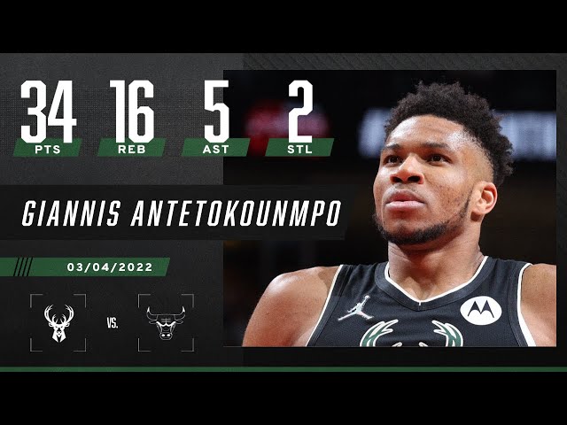 Giannis Antetokounmpo records 34 PTS & 16 REB as Bucks top Bulls