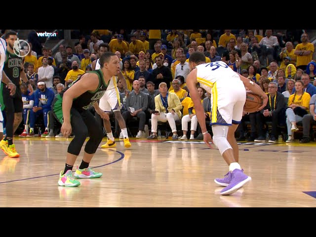 Grant Williams blocks Steph Curry and breaks away for the AND-1