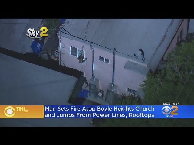 Title: Half-Naked Man Sets Fire Atop Boyle Heights Church, Jumps From Rooftops And Rappels Down Power Lines