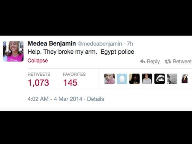 Title: "Help. They Broke My Arm. Egypt Police": Peace Activist Medea Benjamin Detained en Route to Gaza