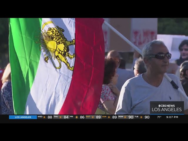 Title: Hundreds of Iranian-Americans gather to rally for human rights in their homeland after woman dies in