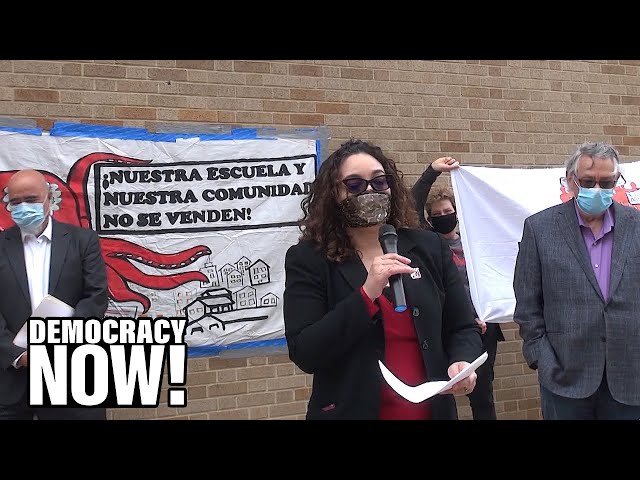 Title: Immigrants Protest Demolition of NJ Public School for $750 Million Robert Wood Johnson Cancer Center