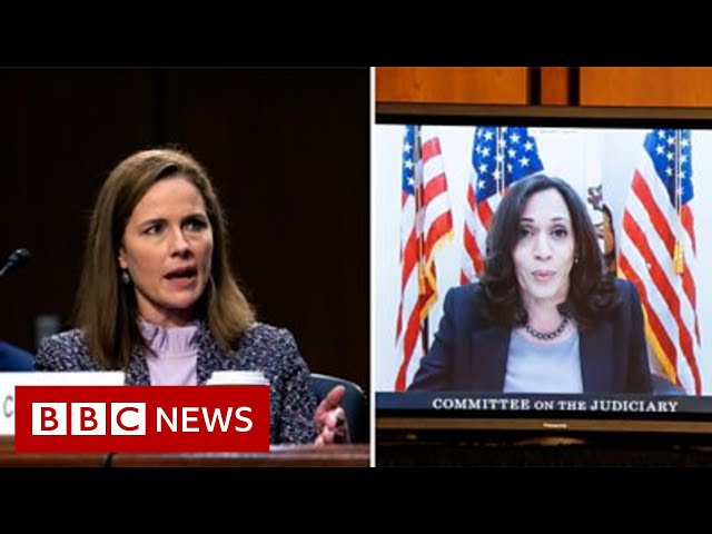 Title: Kamala Harris asks Amy Coney Barrett: 'Do you believe climate change is happening?' - BBC News
