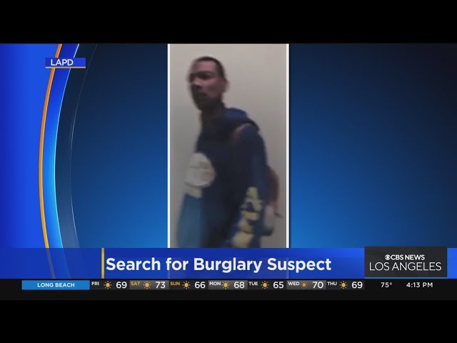 Title: LAPD officers searching for burglary suspect who struck same apartment complex multiple times