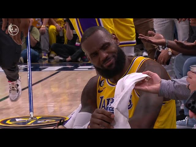 LeBron thanks Nuggets fan for towel after taking a spill