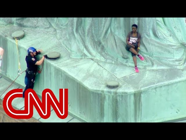 Protester climbs Statue of Liberty