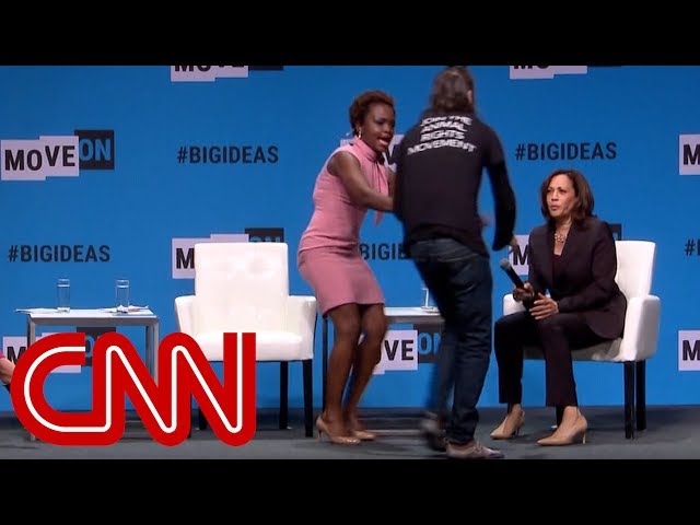 Protester grabs Kamala Harris' microphone on stage