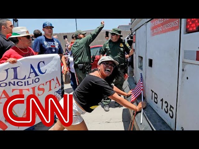Protesters block bus at immigration site