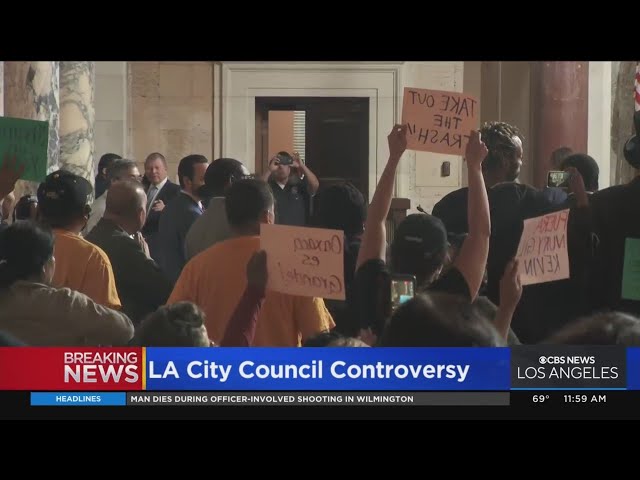 Title: Protestors disrupt LA City Council meeting as members call for censure of those involved in scandal
