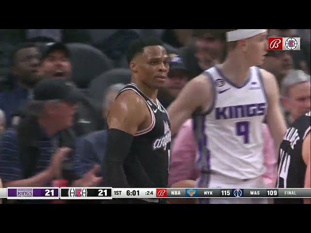 Russell Westbrook scores his first bucket with the LA Cli...