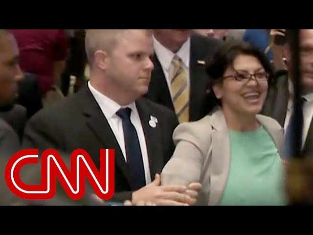 She heckled Trump, then won primary election