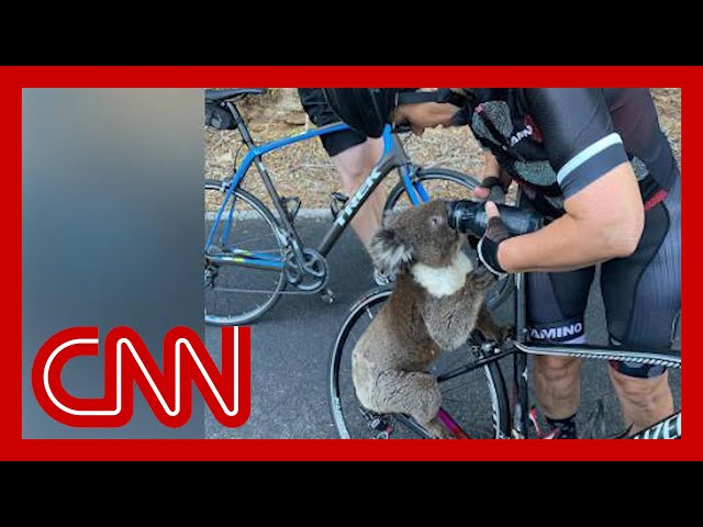 Thirsty koala stops cyclists