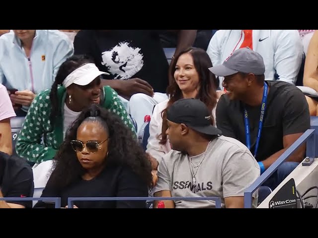 Tiger Woods greets Venus Williams at Serena Williams' second round match #USOpen