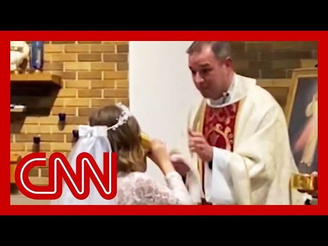 Watch priest's reaction when 7-year-old chugs first commu...