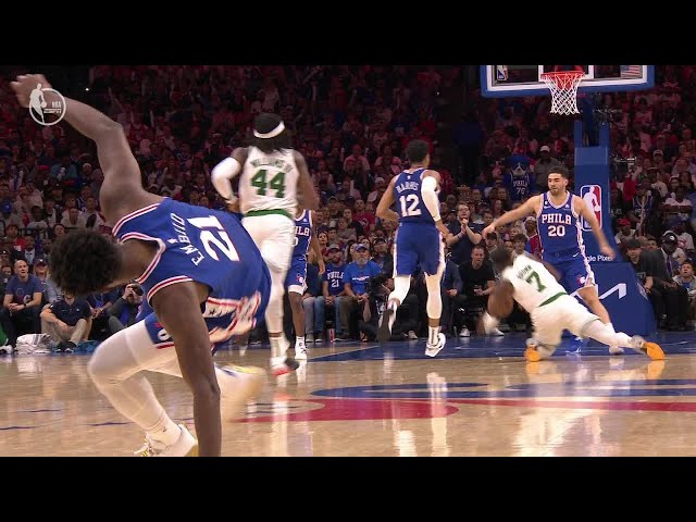 WILD SEQUENCE Joel Embiid & Jaylen Brown hit the deck in...